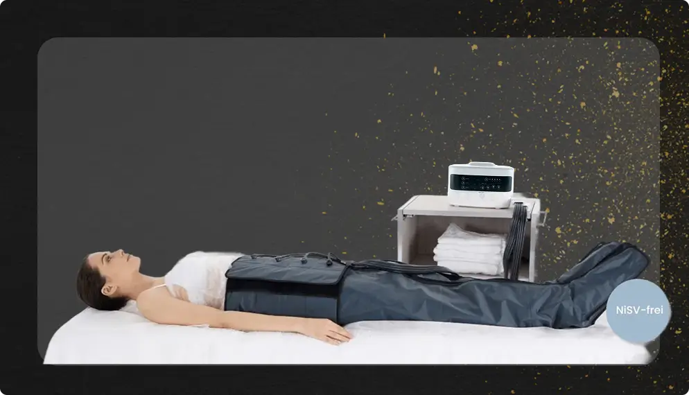 Luxus-Gesichtspflege wird durch Pressotherapie für den Körper ergänzt – eine sanfte lymphaktivierende Wellness-Anwendung, kombiniert mit Anti-Cellulite-Pflege.